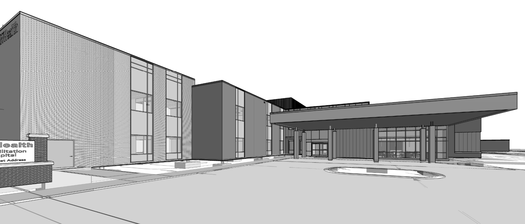 A rendering of the proposed UW Health/UnityPoint Health - Meriter/Lifepoint rehab hospital in Uptown.